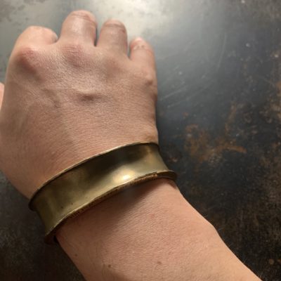 幅広く厚みのある真鍮性のバングル。